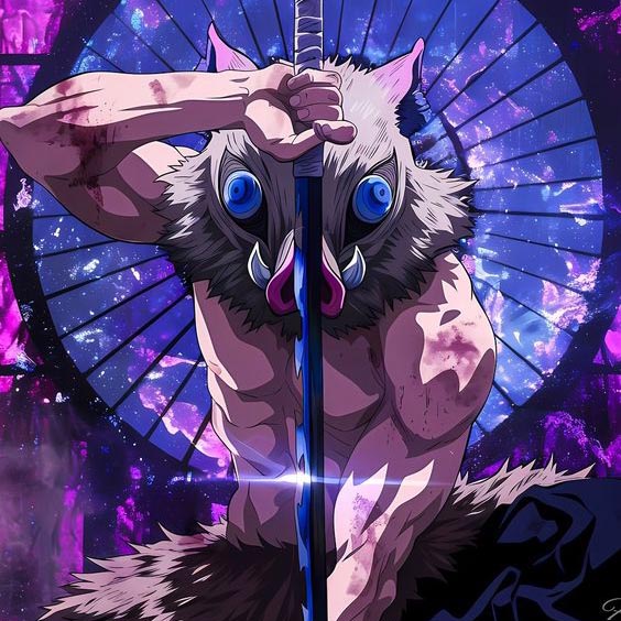 He wears a boar's head as a mask, symbolizing his connection to the wild, and he is skilled in using dual swords, employing the Beast Breathing techniques. Inosuke is often competitive and eager to prove his strength, but beneath his rough exterior, he has a strong sense of loyalty and friendship.
